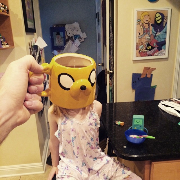 Последние несколько лет, творческий отец Lance Curran использует свою впечатляющую коллекцию поп-тематических кружек, чтобы превратить своих детей в супергероев и других персонажей на воскресный утренний завтрак) Смотрим.